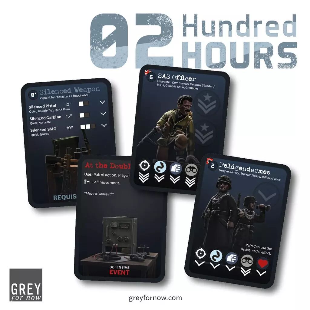 02 Hundred Hours est un jeu d'escarmouche tactique, jouable avec des forces réduites (5 à 20 figurines) incarnant des commandos SAS, résistants, sentinelles allemandes et chiens de garde. Inspiré des films de guerre classiques et d'événements réels, ce wargame met au cœur des parties des raids ciblés : sabotage d'infrastructures, opérations de renseignement, assassinats, ou infiltrations furtives. Chaque scénario vous plonge dans des missions tendues où la discrétion est reine. Attaquez sous couverture d'obscurité, éliminez vos ennemis en silence ou déclenchez une embuscade dévastatrice. Défendez vos positions en orchestrant des patrouilles, en utilisant les chiens et en interceptant les communications adverses.