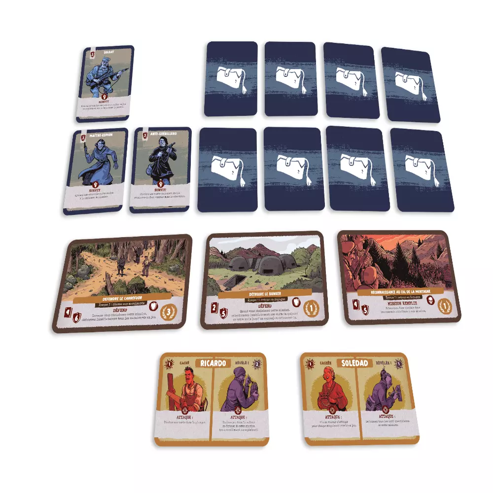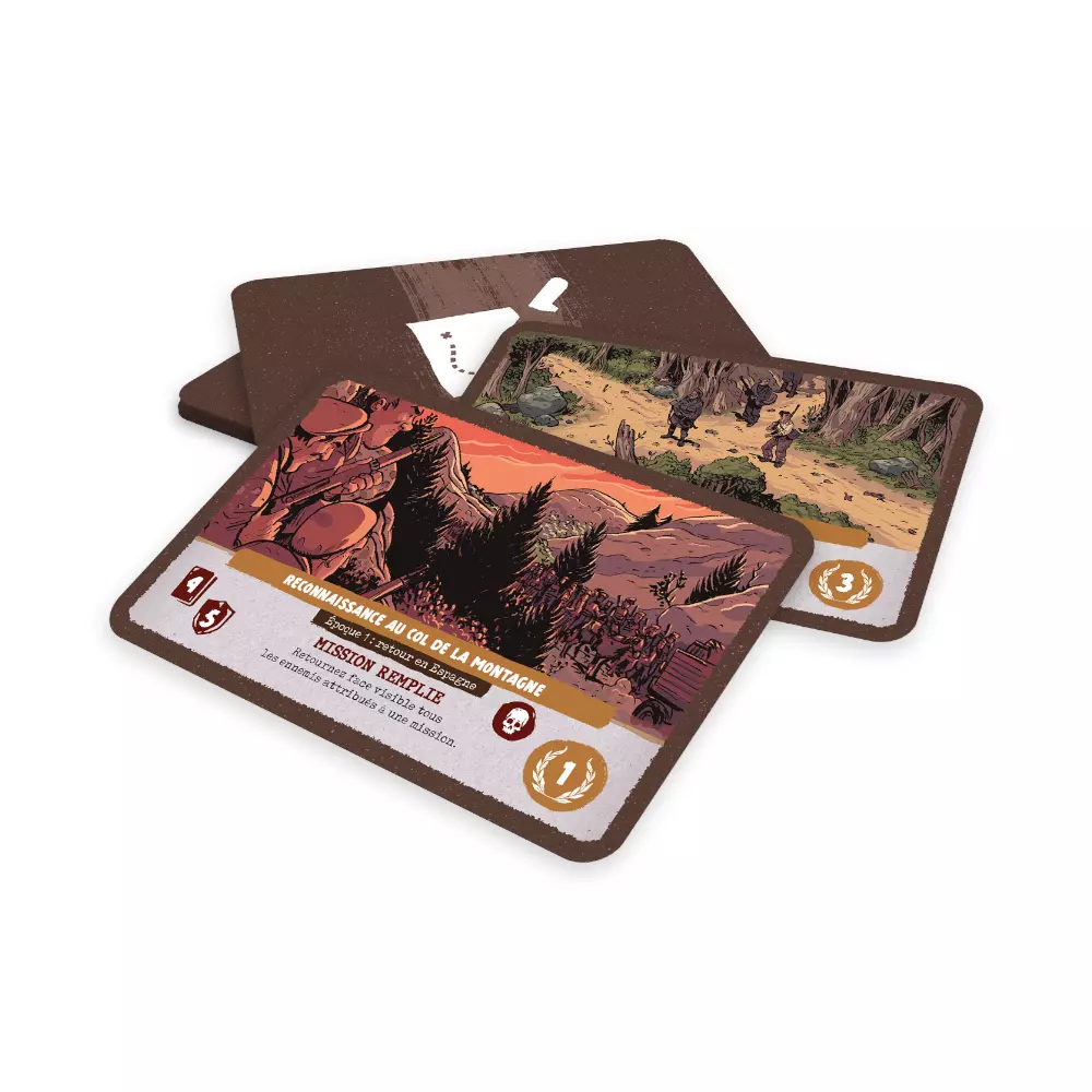À la fin de la guerre civile espagnole, un groupe de loyalistes républicains, appelés maquisards, continue de combattre pour la démocratie et la liberté. RESISTANCE ! est un jeu de cartes solo où vous combattez contre le régime franquiste à travers différentes missions. Vous menez votre groupe de braves maquisards déterminés à accomplir ces missions, à vaincre ses ennemis et à protéger les civils.