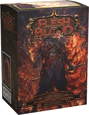 Boite de 100 protège-cartes Dragon Shield Matte au format standard. Face transparente et illustration matte Flesh & Blood au dos.