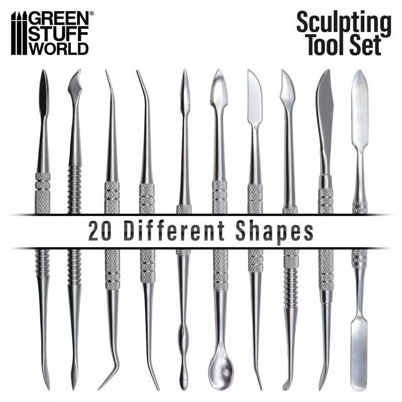 Avec un total de 20 extrémitées différentes en acier inoxydable t pour être utilisé avec des mastics de tout genre comme Green Stuff, Milliput, Sculpey, argile, etc ... pour tous les types de modélisation et de raffinement de figurines artistiques.