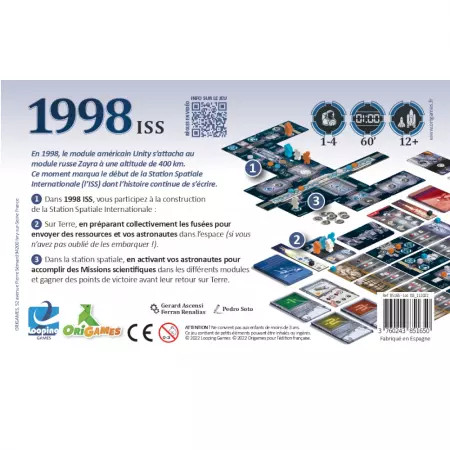 Dans 1998 ISS, vous participez à la construction de la Station Spatiale Internationale. Sur Terre, en préparant collectivement les fusées pour envoyer des ressources et vos astronautes dans l’espace (si vous n’avez pas oublié de les embarquer !). Dans la station spatiale, en activant vos astronautes pour accomplir des Missions scientifiques dans les différents modules et gagner des points de victoire avant leur retour sur Terre.