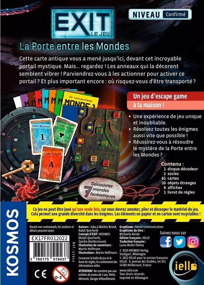 EXIT est un jeu qui reprend les sensations des "escape games". Muni d'indices, de matériel et d'un décodeur, vous aurez pour mission de sortir du jeu le plus rapidement possible.
