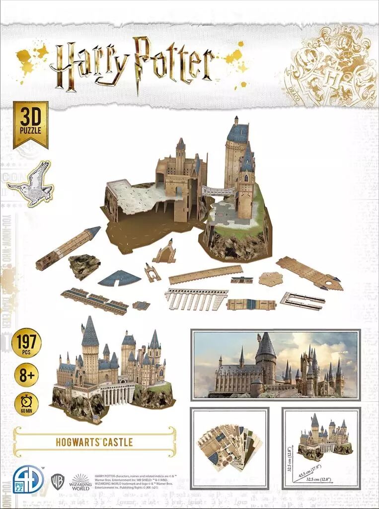 Ce puzzle, destiné à des passionnés à partir de 8 ans, vous permet de donner corps à cette majestueuse école de magie à l’aide de 197 pièces. Vous ferez naître sous vos yeux, en assemblant les pièces, tout l’émerveillement qu’évoque ce lieu mythique.