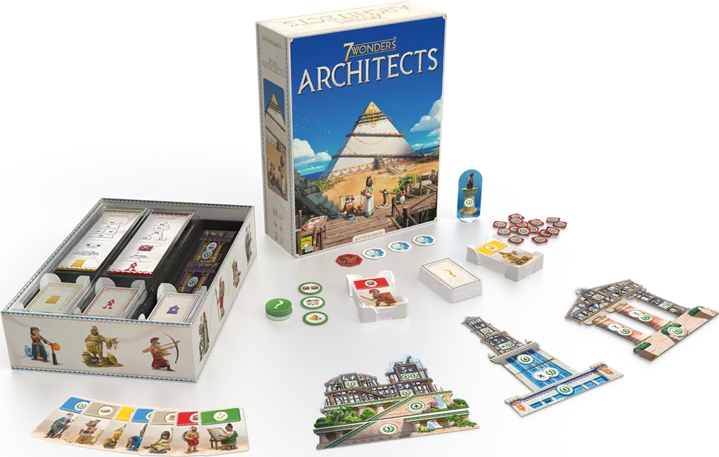 Le matériel de 7 Wonders Architects est de grande qualité et contribue à vous immerger dans l'univers du jeu. Les cartes sont joliment illustrées et les Merveilles sont chacune unique et détaillée. Le jeu est également "colorblind friendly" pour le rendre accessible aux daltoniens.