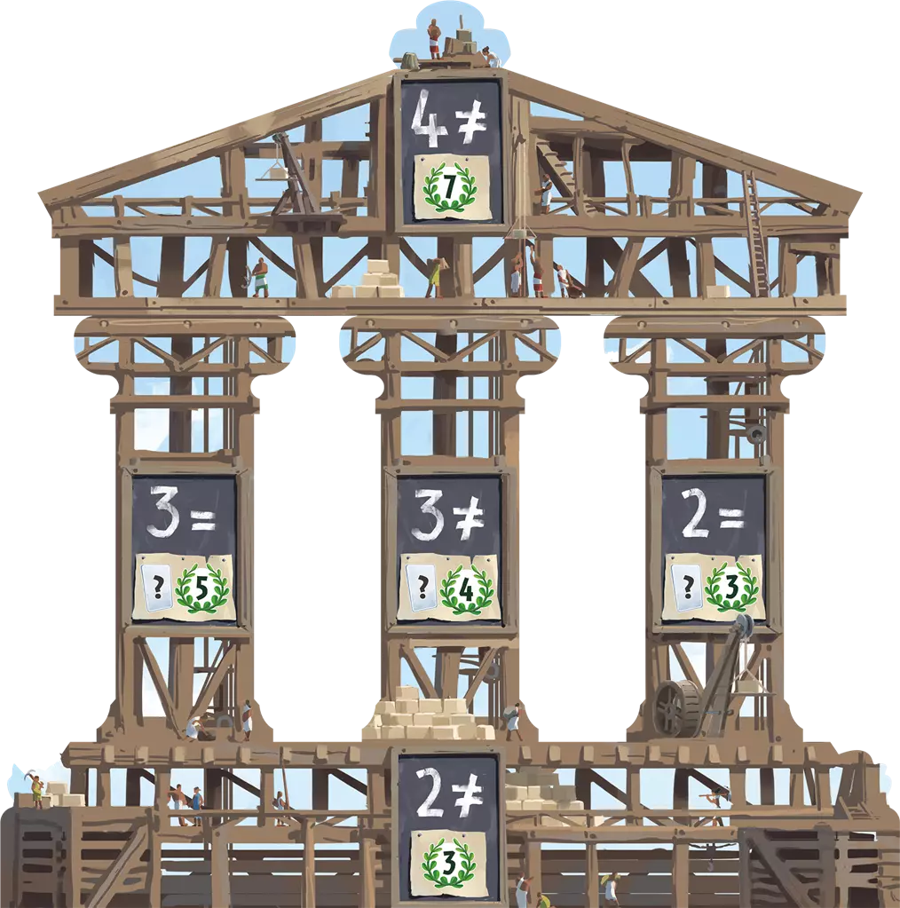 Dans 7 Wonders Architects, vous incarnez un bâtisseur de l'Antiquité qui doit ériger sa propre Merveille. Pour cela, vous devez choisir des cartes parmi trois paquets mis à votre disposition: votre propre paquet, celui de votre voisin et une pioche commune. Ces cartes vous permettent de rassembler des ressources, de construire des monuments, de développer des avancées scientifiques et de mener des batailles militaires.