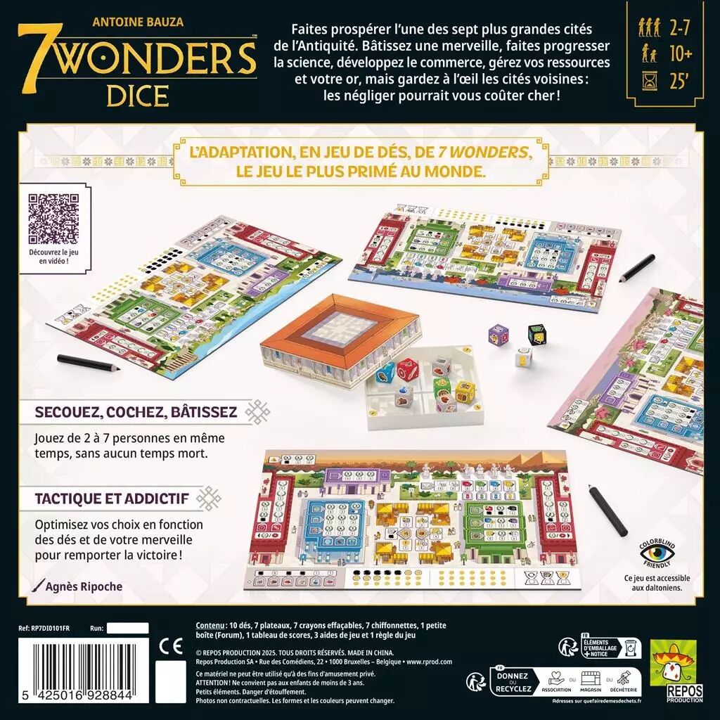 En moins d’une demi-heure, 7 Wonders Dice offre tout le plaisir du jeu original avec une dose d’énergie supplémentaire. Le format plus léger rend ce jeu parfait pour les soirées où le temps est compté mais où la passion est grande.