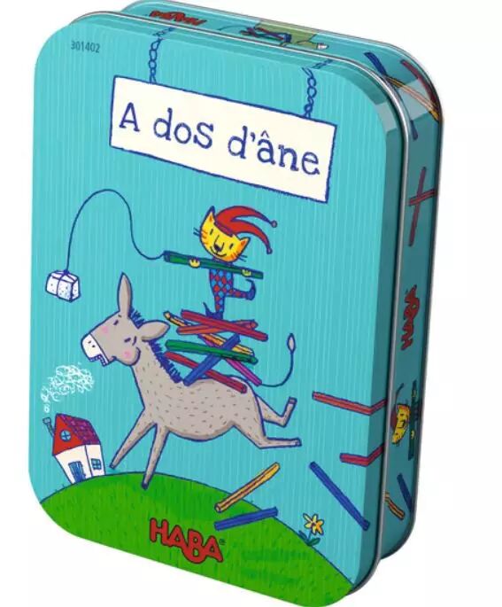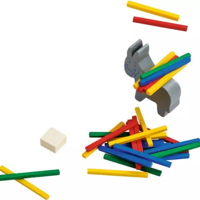 Contenu: 1 âne, 40 bâtonnets et 1 morceau de sucre en bois, 1 règle de jeu.