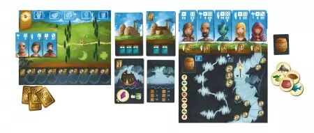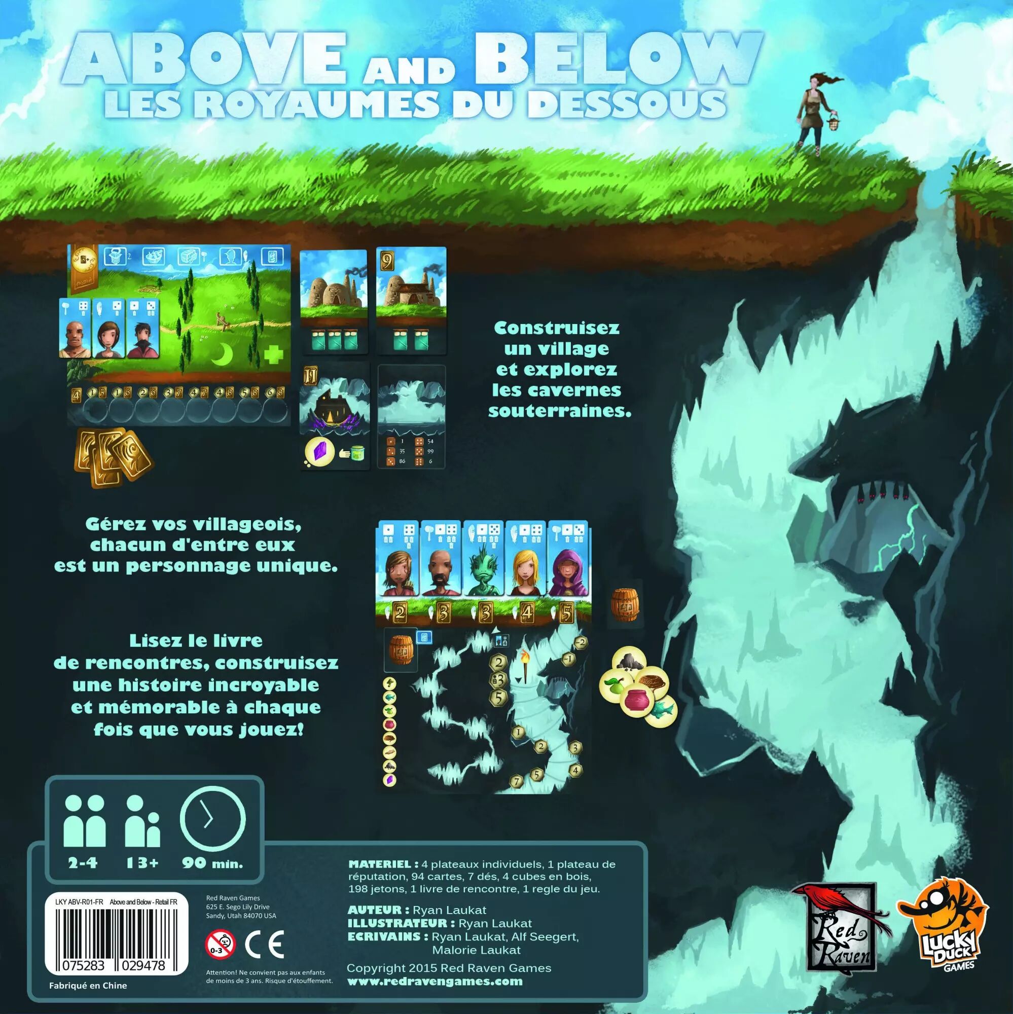 Above and Below - Les royaumes du dessous est un mélange de jeu de construction de ville et de jeu narratif ou vous et jusqu'à trois autres joueurs êtes en competition pour construire le meilleur village a la surface et en sous-sol.