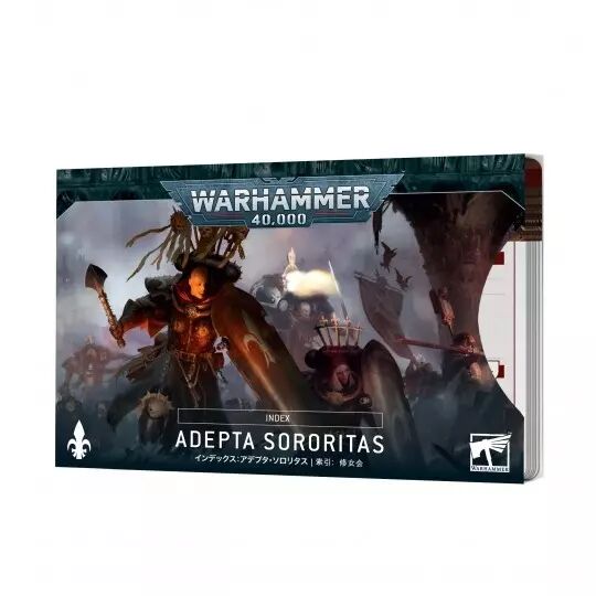 - 3x Cartes d'Index de l'Adepta Sororitas, détaillant les règles d'armée de la faction et le Détachement Martyrs Sacrés