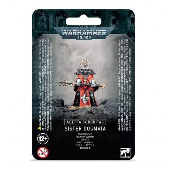 La Sœur Dogmata est aussi crainte que respectée au sein de son ordre, car elle seule a l'autorité de pouvoir condamner d'un seul mot une Sœur de Bataille à rejoindre les Repentia. Déclamant des prières et abattant sa masse colossale, la Sœur Dogmata pousse l'Adepta Sororitas à redoubler de foi et de fureur sous son regard d'acier.