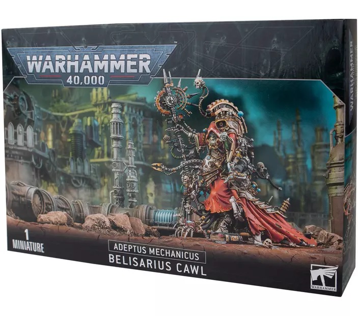 Ce kit plastique contient les composants nécessaires pour assembler Belisarius Cawl, Porte-parole de l'Omnimessie. Dominant ses frères de l'Adeptus Mechanicus, il est bien plus grand que même les Tech-Priests de l'Omnimessie, avec d'innombrables augmentations déformant sa silhouette à peine humaine. Il manie une hache de l'Omnimessie, qui sert également de point d'attache à différents capteurs et à son émetteur vocal, et un électrofléau – une arme à énergie occulte bardée de câbles, de senseurs et d'appendices. Le thème de l'augmentation se retrouve partout – la bure de Cawl ne dissimule guère sa pléthore d'extensions robotiques, dont des paires de membres locomoteurs, des bras préhensiles et des câbles qui lui font une traîne. Un augurocrâne flotte à proximité, et plusieurs symboles du Dieu-Machine ornent la figurines.