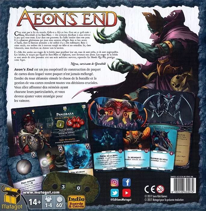 Aeon's End est une véritable pépite pour les amateurs de jeux de cartes et de deckbuilding. Son système de jeu original, son univers sombre et envoûtant, ainsi que sa rejouabilité en font un incontournable.