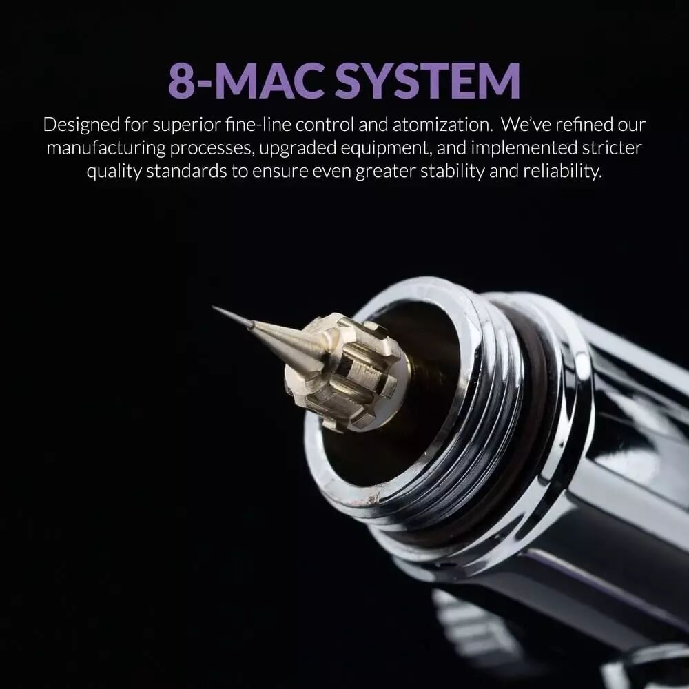 La série Ace représente le haut de gamme de chez Gaahleri, et le Swallowtail SD en est le fer de lance technologique. Son système 8-MAC assure une atomisation de la peinture d'une finesse rare, même à basse pression.