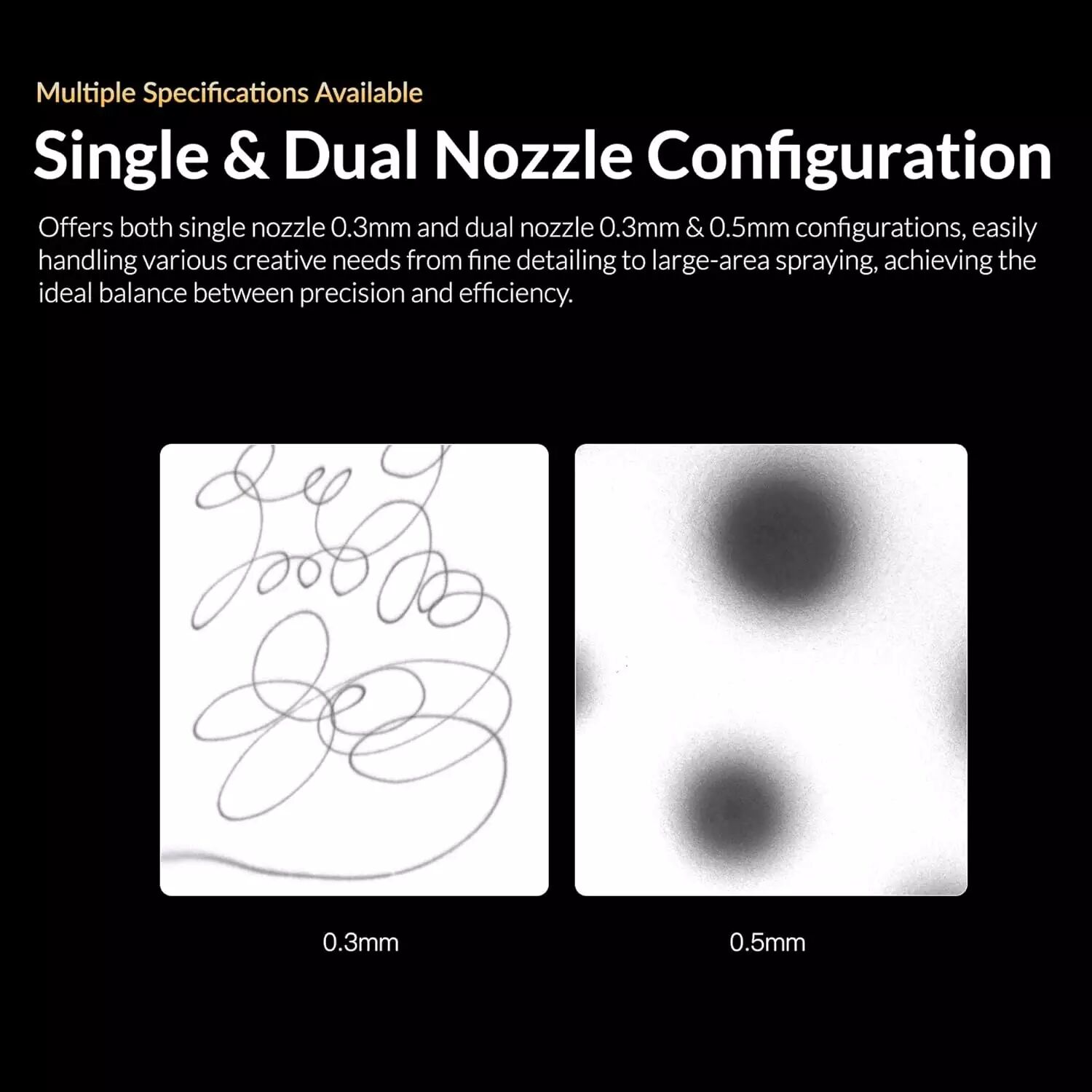 Avec la buse de 0.5mm : Application d'apprêts (primers), vernis, couches de base sur de grandes surfaces ou utilisation de peintures à pigments plus larges (métallisées, acryliques épaisses).
