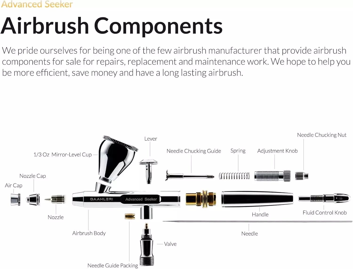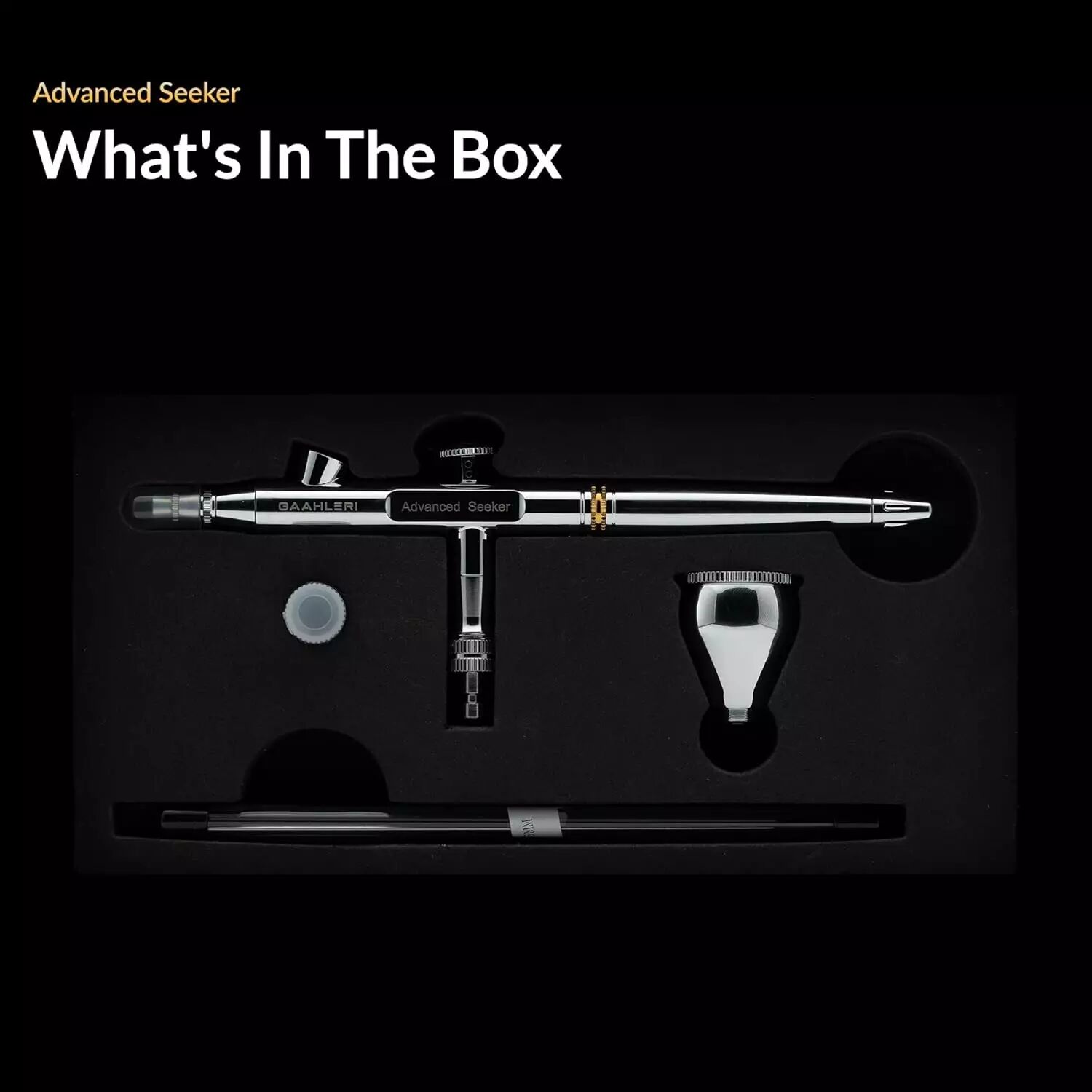Pourquoi il change la donne : Le cœur du Seeker réside dans son système de buse. Contrairement aux buses traditionnelles fragiles, le design de Gaahleri permet un flux d'air plus régulier, réduisant drastiquement les risques de "clogging" (bouchage) et facilitant le démontage pour le nettoyage—le cauchemar de tout aérographiste.