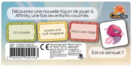 Réf. : GAM012AF Affinity vous a permis de découvrir vos amis et de voir que vous étiez sur la même longueur d'onde... Mais est-ce dans tous les domaines, même les plus intimes ? Découvrez-le dans cette extension et tester ensemble votre sensualité !
