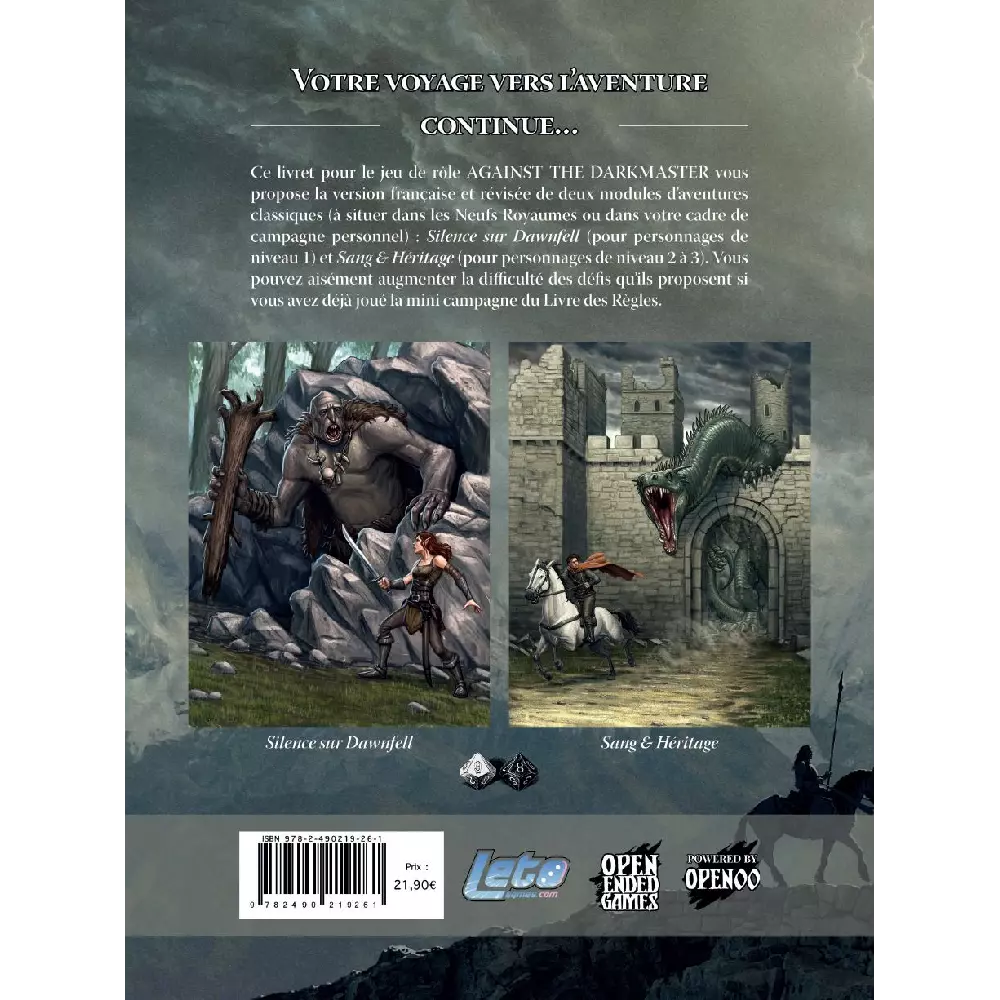 Sur le plan narratif, Against The Darkmaster est un jeu de rôle de dark fantasy épique et classique, inspiré des grandes œuvres du genre et du lyrisme du métal symphonique. Il prend toute sa dimension dans le cadre d’une campagne basée sur l’inéluctable progression d’un Maître des Ténèbres et de ses serviteurs.