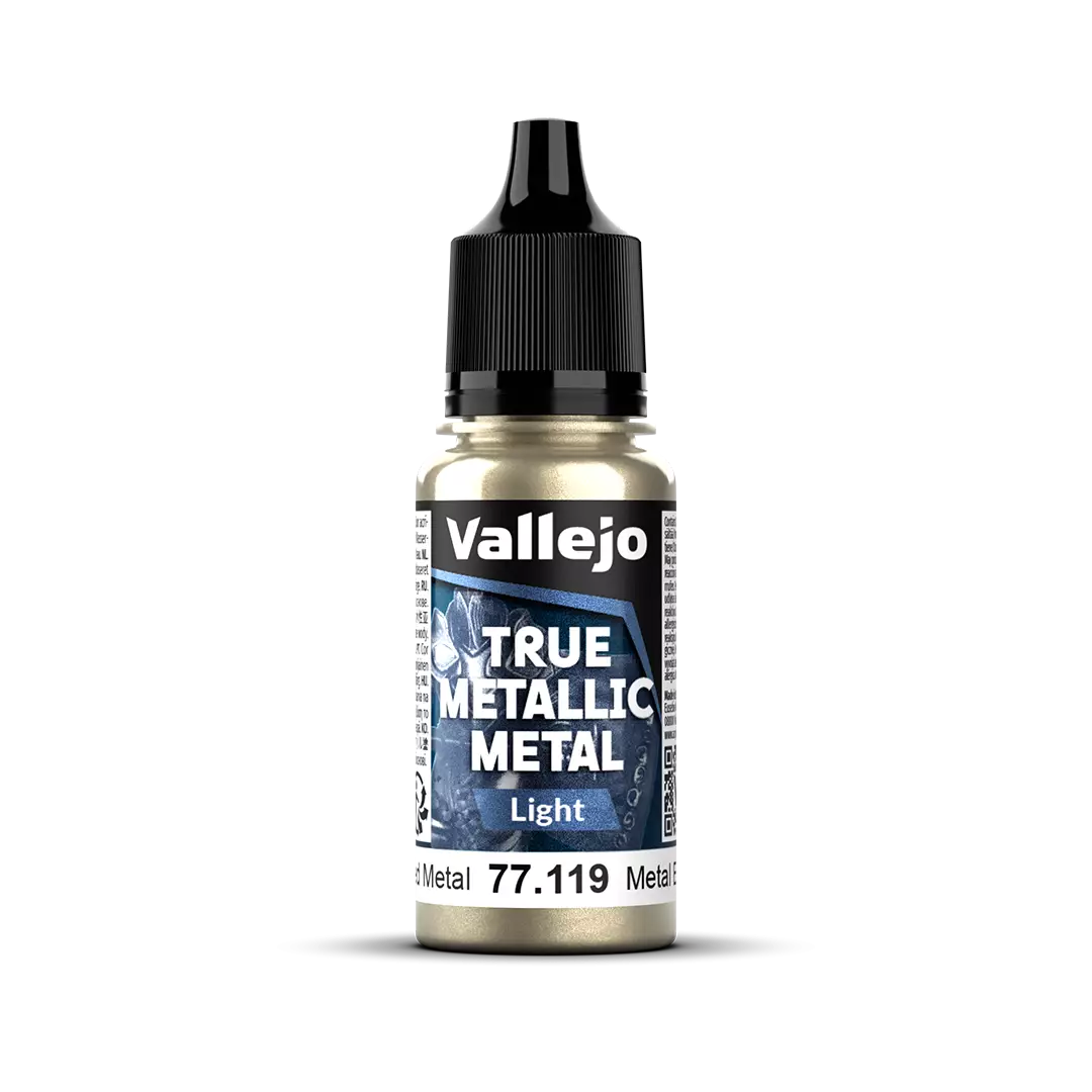 La gamme True Metallic Metal de Vallejo met fin aux compromis : pour la première fois, vous obtenez de vraies métallisations éclatantes sans sacrifier la saturation des couleurs ni la facilité d'application. Chacune des 80 peintures acryliques est organisée en 20 familles chromatiques cohérentes, fonctionnant selon un système simple et puissant : Base (pinceau ou aérographe), Shade (pour les ombres) Light (pour les reflets) ou système BSL.