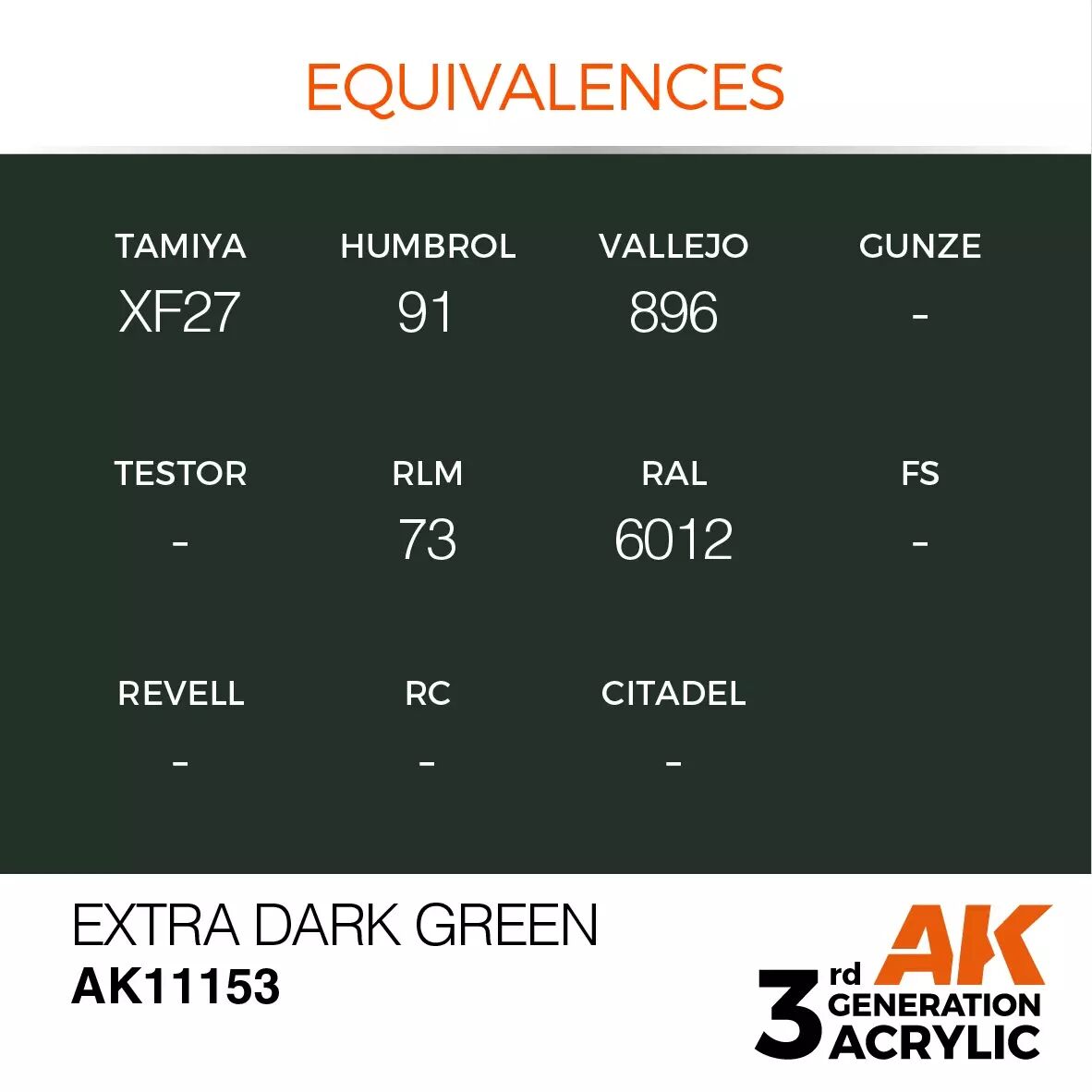 Accueil > Modélisme > Peintures > Peintures AK Interactive > 3rd Generation Acrylic > Ak Interactive - 3Rd Gen - Extra Dark Green 17Ml