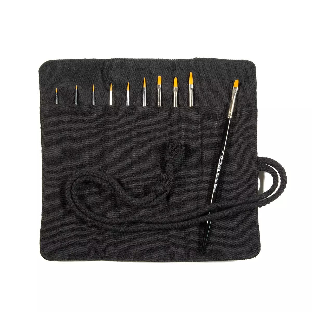 Étui en tissu contenant une sélection spéciale de 10 brosses synthétiques de haute qualité d'ABT.