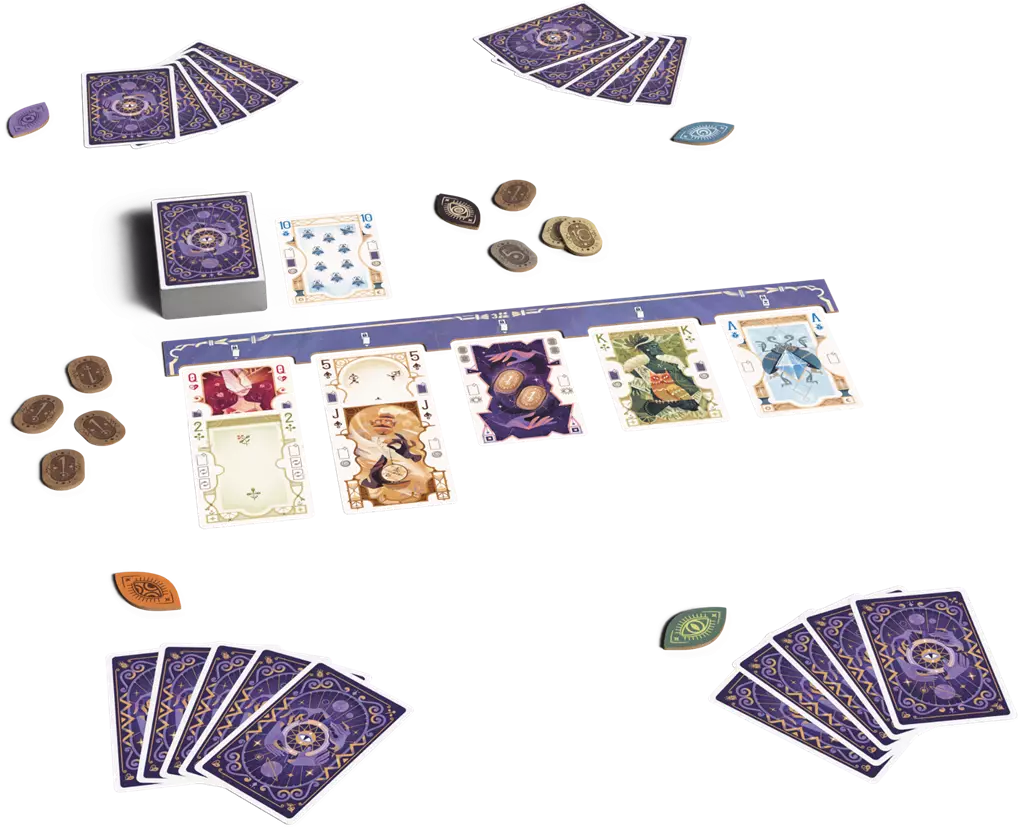 Revisitant le poker à travers le prisme de la divination, ce jeu tactique vous permet de marquer des points en vous forgeant la main parfaite… et en prédisant qui y parviendra le mieux.
