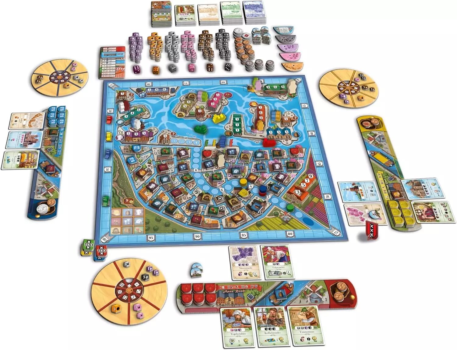 Amsterdam - Essential Edition brille par son système de jeu astucieux. À chaque tour, sélectionnez une carte et deux dés parmi six pour obtenir des ressources cruciales. Cette mécanique offre un subtil mélange de planification et d'adaptation, vous obligeant à ajuster constamment votre stratégie face aux choix limités mais percutants qui s'offrent à vous.