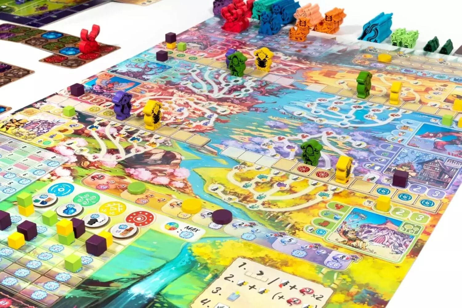 Visuellement, Arborea est un bijou. Ses illustrations vibrantes et colorées évoquent un monde rêvé où la nature est reine. Les composants, des meeples mignons aux cartes détaillées, témoignent d'une finition soignée. Ce plateau généreusement illustré vous immerge instantanément, bien que sa taille et sa profusion de couleurs puissent demander un petit temps d'adaptation. Une fois maîtrisé, ce visuel unique renforce l’expérience de jeu.