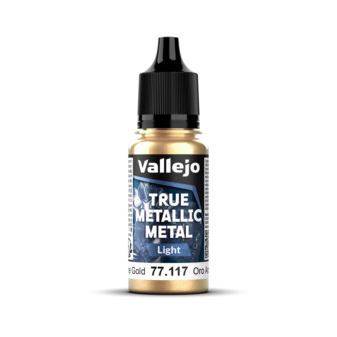 La gamme True Metallic Metal de Vallejo met fin aux compromis : pour la première fois, vous obtenez de vraies métallisations éclatantes sans sacrifier la saturation des couleurs ni la facilité d'application. Chacune des 80 peintures acryliques est organisée en 20 familles chromatiques cohérentes, fonctionnant selon un système simple et puissant : Base (pinceau ou aérographe), Shade (pour les ombres) Light (pour les reflets) ou système BSL.