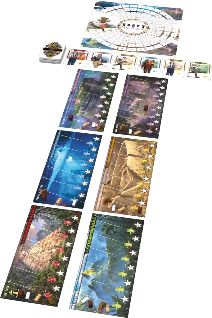 Archeos Society présente un design magnifique qui vous plongera dans l'univers des explorateurs et des civilisations oubliées. Les illustrations sont sublimes et le matériel de qualité vous offrira une expérience de jeu immersive.