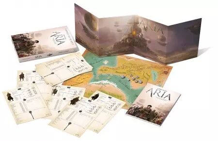 Cette boite contient Un livret de 96 pages. Vous y trouverez des règles du jeu vous permettant de créer vos personnages ainsi que deux scenarios originaux pour découvrir l'univers d'Aria, mais aussi 15 Fiches de personnages à jouer, une carte du monde, un écran de jeu inédit et un set complet de dés !