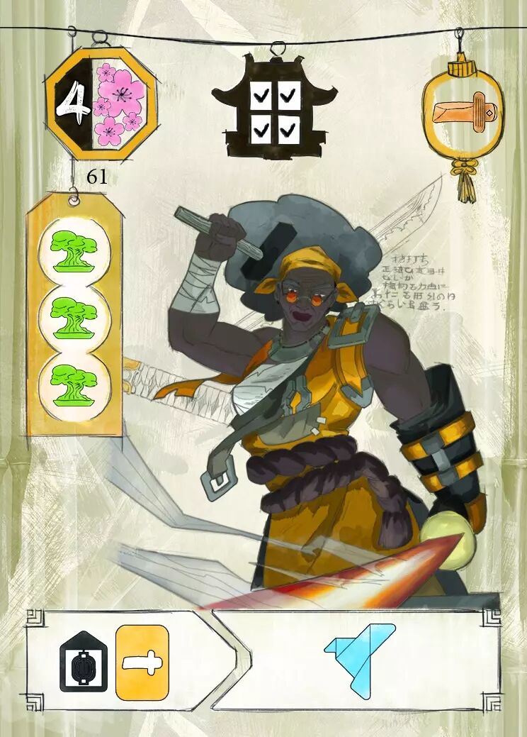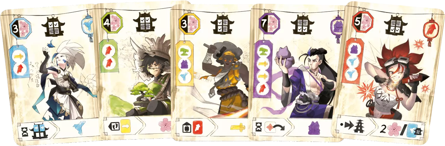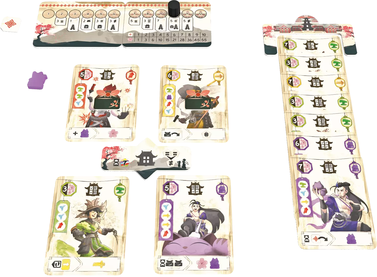 À la tête d’un village, chaque joueur doit choisir au mieux parmi ses 5 cartes artisans, sélectionner un résident, deux fabricants et deux voyageurs, puis décider lesquels envoyer au palais du Shogun. Chaque artisan déclenche des effets uniques, forge des objets ou optimise la production, déclenchant des combos savoureuses qui rendent la gestion palpitante.