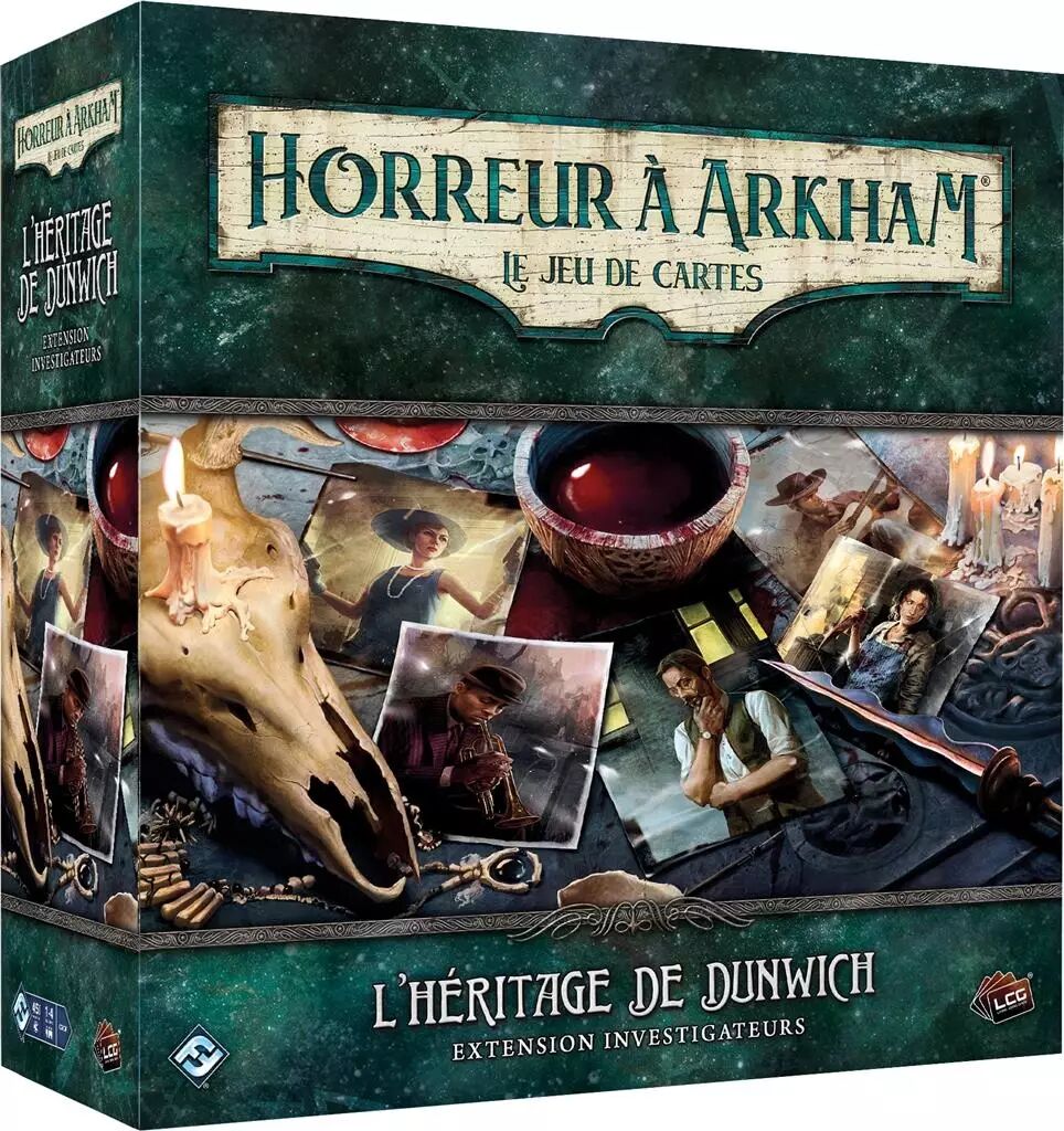 Une présence monstrueuse terrorisait autrefois le village isolé de Dunwich. Cette période d'horreur n'a pris fin qu'après que trois professeurs de l'université de Miskatonic - le Dr Henry Armitage, le Dr Francis Morgan et le professeur Warren Price - se soient aventurés à Dunwich, armés de savoirs ancestraux qui leur ont permis de vaincre la créature. Aujourd'hui, plusieurs mois plus tard, les collègues du Dr Armitage ont disparu, et il craint le pire...Revenez au tout premier cycle de contenu du jeu Horreur à Arkham : Le Jeu de Cartes avec l'extension Investigateurs pour L'Héritage de Dunwich. Comme pour les extensions Confins de la Terre, toutes les cartes de joueur de ce cycle se trouvent dans l'extension Investigateurs. Retrouvez Ashcan Pete et Zoey Samaras Ce sont 5 investigateurs que vous retrouverez dans cette extension ainsi que plus de 200 cartes joueurs qui vous permettrons d'améliorer et de varier vos decks afin de faire face au nombreux dangers des campagnes Horreur à Arkham Le Jeu de Cartes.