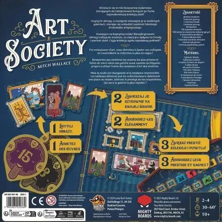Des règles intuitives : Art Society propose un gameplay facile à apprendre, idéal pour les joueurs de tous niveaux. Placez vos tuiles de peinture sur votre tableau en respectant les règles de composition et de style.