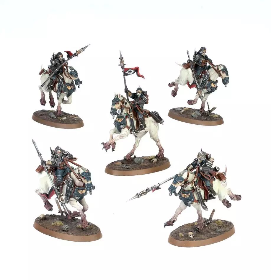 Intégrer une unité de Cavaliers de Krieg constitue un immense honneur pour un soldat du Death Korps. Chevauchant leurs destriers génétiquement améliorés, ces cavaliers courageux s'élancent au travers des champs de mort, lances baissées et sabres au clair, pour écraser l'ennemi et disperser ses rangs, créant ainsi des failles exploitables par les fantassins et les blindés alliés.