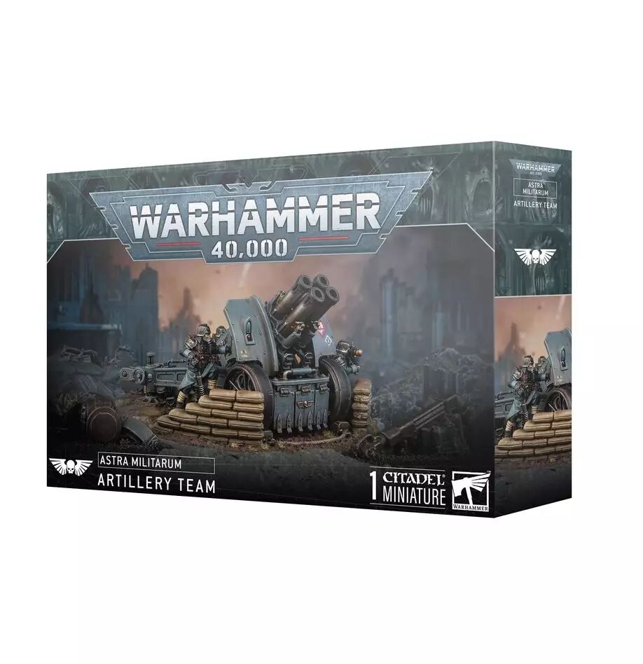 Les Équipes d'Artillerie de l'Astra Militarum utilisent un armement lourd et varié pour annihiler l'ennemi à très longue portée. Les diverses munitions employées par ces armes lourdes sont capables d'éliminer des escouades entières de fantassins, d'éventrer des bunkers renforcés ou encore de ravager des convois de blindés.