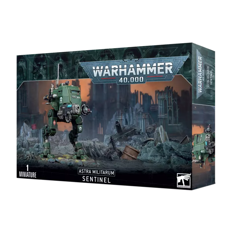 Ce kit plastique permet d'assembler un Sentinel Blindé, un marcheur léger doté d'une grande puissance de feu sur un châssis robuste. Ce kit dispose de tout un tas d'options, ce qui vous permet d'équiper votre Sentinel pour répondre aux exigences de n'importe quel champ de bataille avec un autocanon, un lance-flammes lourd, un lance-missiles, un multi-laser ou un canon à plasma. Vous pouvez également équiper votre marcheur d'une tronçonneuse Sentinel orientable pour une plus grande efficacité en combat rapproché, ainsi que d'un missile traqueur pour renforcer encore sa puissance de feu. Vous trouverez également de nombreuses options esthétiques, comme un projecteur et des lanceurs de fumigènes, des arrimages et des râteliers d'équipement supplémentaires, des bidons de carburant supplémentaires.