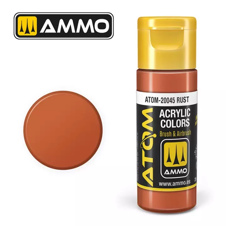 La gamme ATOM est le résultat d'années de recherche chez Ammo Mig pour créer la "peinture parfaite". Elle se distingue par une identité visuelle claire et une sélection de teintes historiques et modernes rigoureusement fidèles à la réalité. C'est la nouvelle référence pour tous les types de modélisme (blindés, aviation, figurines, sci-fi).