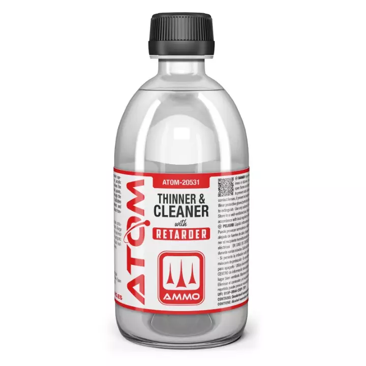 L'ATOM Thinner & Cleaner with Retarder est l'outil ultime pour les modélistes travaillant dans des environnements secs ou réalisant des travaux de haute précision. En intégrant un retardateur (retarder), ce produit prolonge le temps d'ouverture de la peinture ATOM.