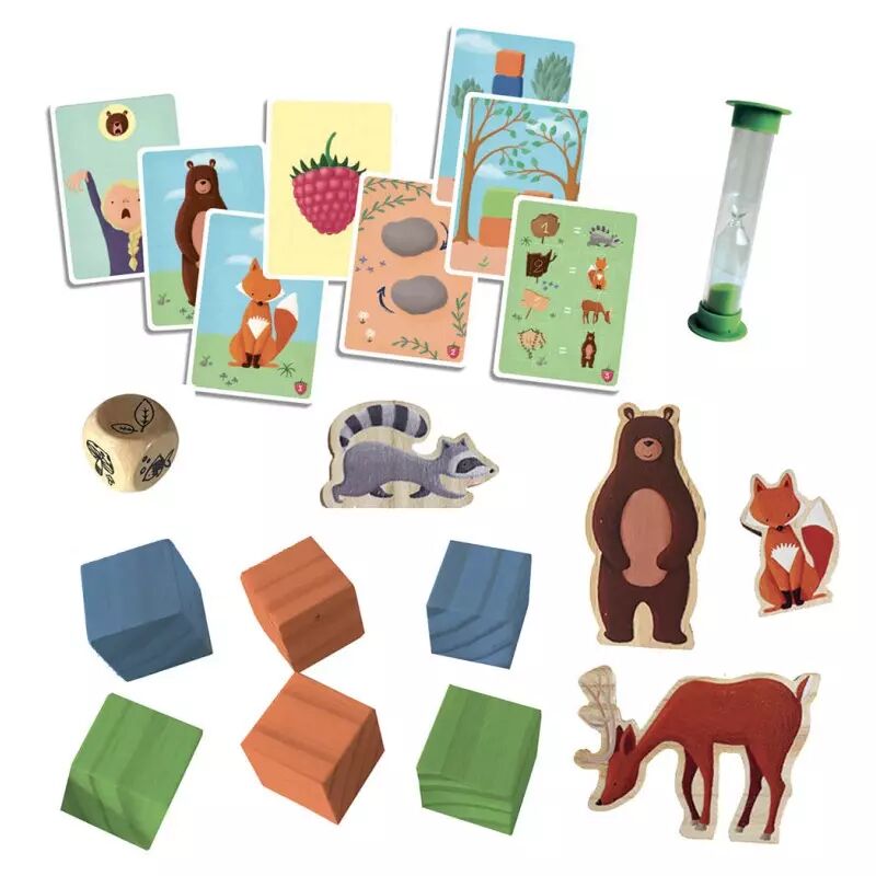 Vous voilà en plein milieu de la forêt et affamés ! Votre objectif ? Collecter un maximum de framboises pour gagner la partie ! Pour cela vous aurez le temps d’un sablier pour réussir le plus d’actions possibles : imiter un animal, construire un édifice avec les cubes, attraper l’ours en bois, lancer le dé et plein d’autres défis. Alors attention… Prêts ? Mangez !