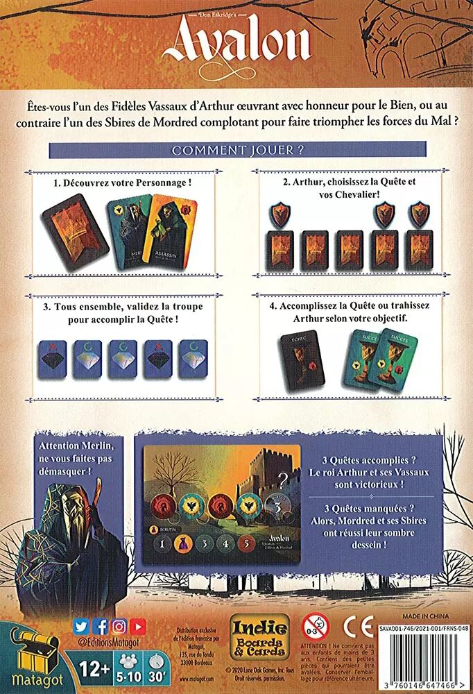 Réf. : MATAVA005382 Avalon est un stand alone dans l'univers du jeu Résistance où suspicion et bluff seront les meilleures armes. Pour gagner, les joueurs devront utiliser leur sens de déduction et leur logique.