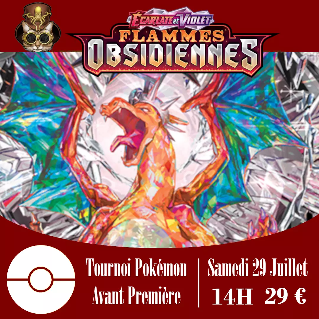 Découverte de la nouvelle extension Écarlate & Violet : Flammes Obsidiennes ! Format scellé avec les kits d'avant-première. Boosters en récompense. N'hésitez pas à contacter la boutique pour réserver !