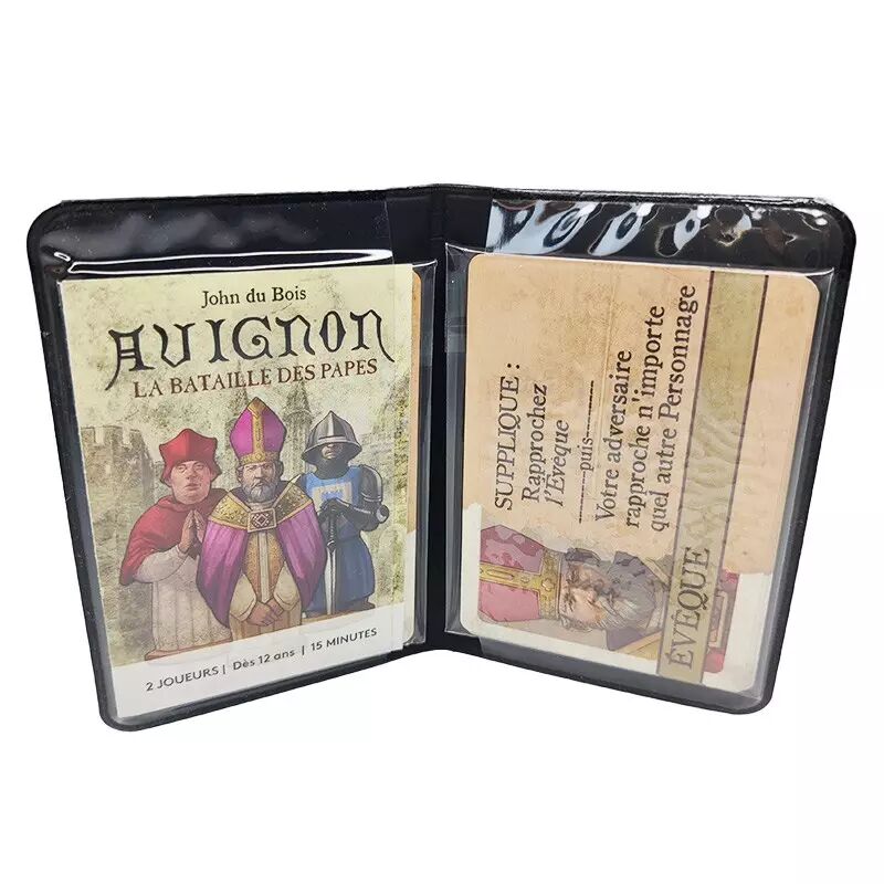 Avignon : A Clash of Popes est un jeu de cartes de manipulation d'influence rapide dans lequel les deux joueurs sont des candidats rivaux pour le pape au 14ème siècle. Les joueurs gagnent en influence en adressant une pétition aux membres de l'Église médiévale, tels que les cardinaux, les nobles et les chevaliers, et en utilisant les pouvoirs uniques des personnages pour tirer les cartes de personnage de leur côté de la table (leur congrégation), ou forcer un adversaire à pousser les cartes vers eux. Le premier joueur à avoir trois personnages dans sa congrégation gagne.