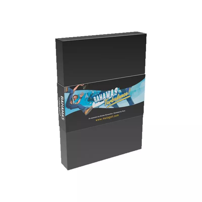Dans Bahamas, tout se règle aux dés ! Chacun reçoit une carte Action et une carte de départ qui s'intègrera dans votre main de Cartes Actions: un parachute, un faux parachute ou la carte du FBI. Constituez votre pool de dés : il en a aura 1 de moins que le nombre total de joueurs. Le premier joueur les lance, et choisit le dé dont il active la face visible. Il pourra donc ainsi piocher ou voler un carte Butin, piocher ou voler une carte Action ou activer la capacité spéciale et forcément crapuleuse de son personnage. Il peut aussi jouer les cartes Action en sa possession pour changer le cours des événements. Il désigne ensuite le joueur suivant, qui choisira un dé dans le même pool. Le dernier joueur n'ayant pas joué ce tour lancera les dés au prochain. Avec Trous d'Air, des Actions toujours plus filoutes sont intégrées dans le jeu, et pourront par exemple forcer un autre joueur à vous donner son parachute ! La partie se termine si un joueur possède les 3 cartes Agent du FBI ou dès que la carte Crash est piochée. Seuls les joueurs ayant alors un parachute ou le canot de sauvetage survivent au crash de l'avion et comptent leur butin, et le plus riche gagne alors la partie !