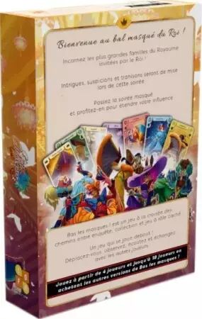 Dans Bas les Masques ! Royauté, vous êtes invité à un bal royal où les alliances se nouent et les rivalités s'exacerbent. Chaque joueur incarne un personnage mystérieux parmi les grandes familles du royaume. L'objectif ? Manipuler, échanger des cartes et déjouer les plans adverses pour atteindre vos ambitions. Une immersion garantie grâce à des illustrations somptueuses et une ambiance luxueuse.