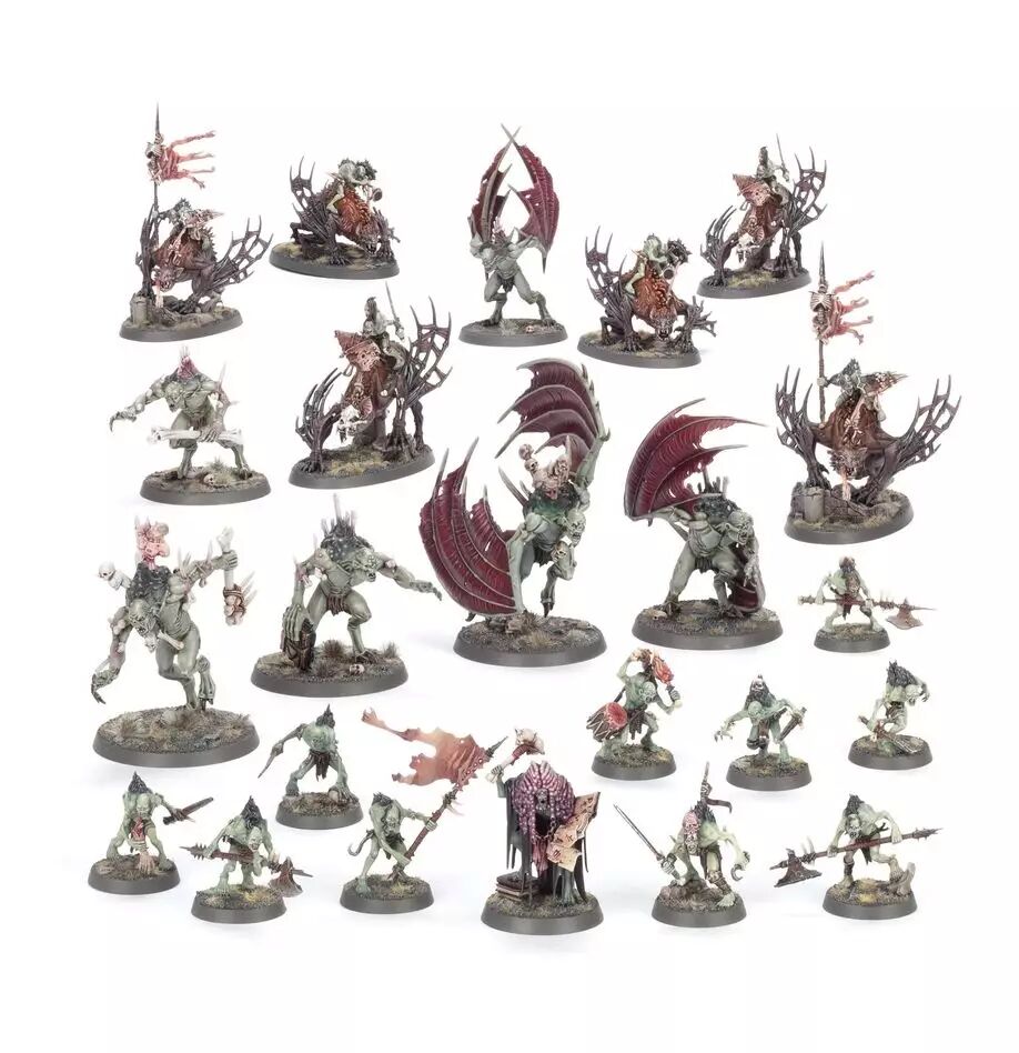 Cette boîte contient 23 figurines en plastique avec diverses options d'assemblage et vous permet de faire des économies par rapport à un achat des kits au détail. C'est un point de départ idéal pour une armée des Cours de Mangechairs, ou une très bonne manière d'étoffer une collection existante.