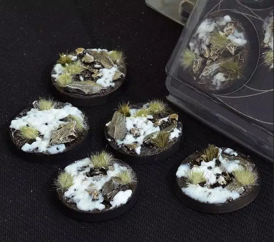 Environnements rocheux froids recouverts de neige partiellement fondue et de quelques touffes non saturées. Ces bases simulent avec réalisme les climats froids ainsi que les habitats saisonniers froids de l'hiver et du début du printemps avec une végétation clairsemée.