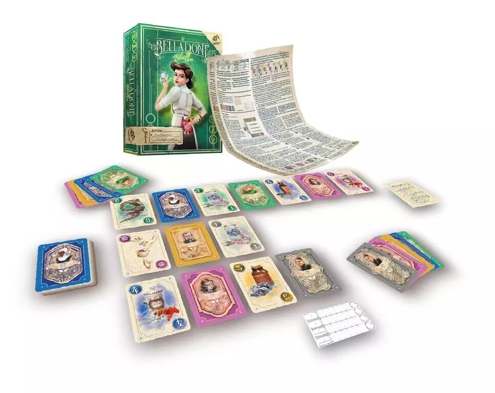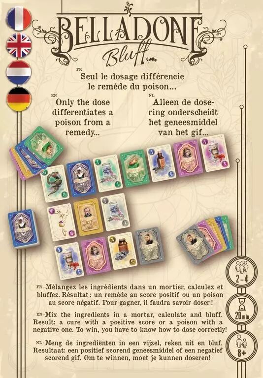 « Belladone Bluff » invite les joueurs à composer des remèdes et poisons en ajoutant des ingrédients aux 3 préparations médicales en jeu.