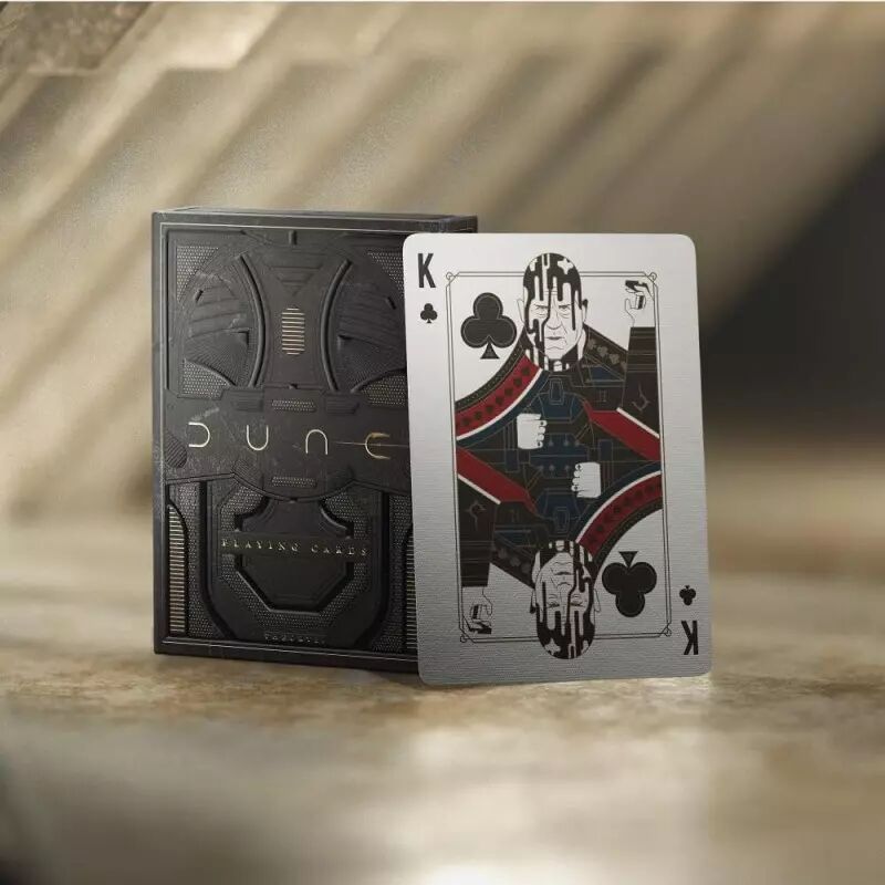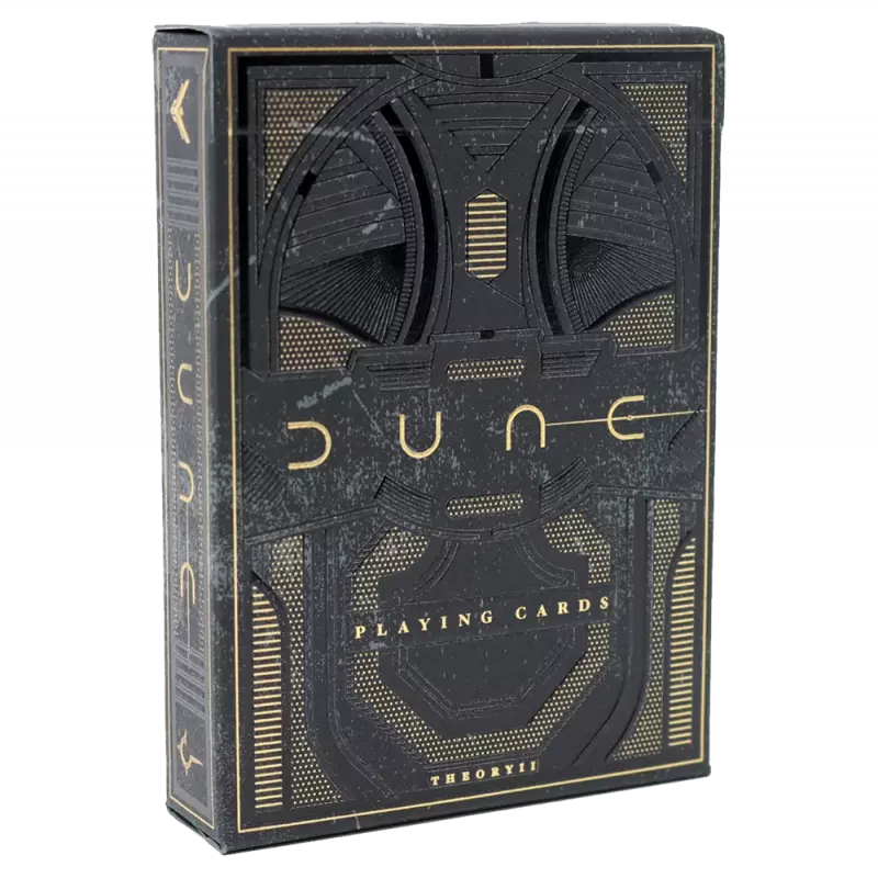 Theory 11 vous présente les cartes à jouer de qualité supérieure dans l'univers de Dune créé par Frank Herbert. agrémenté d'une finition à la brillance inégalée ! L'application d'un coating métal, avant le classique Air-Cushion® finish - signature et garantie de qualité de la marque - confère à ces cartes un look luxueux et une durabilité inédite ! L'étui bénéficie d'une magnifique finition dorée 3D texturée, sur fond graphique.