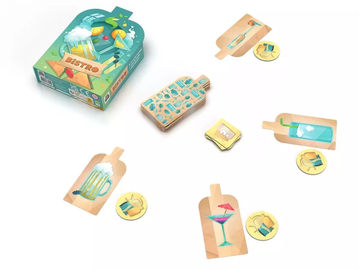 Dans Bistro, le but est simple : ne pas accumuler trop de verres pour éviter de payer l'addition et perdre la partie ! À chaque tour, vous devrez essayer de tromper vos adversaires afin qu'ils cumulent le plus de verres devant eux. Plus vous cumulez de verres, plus vous paierez d'additions. Le joueur qui cumule trois cartes additions perd la partie. Facile à expliquer, ce jeu garantit des moments de rire et de tension autour de la table.