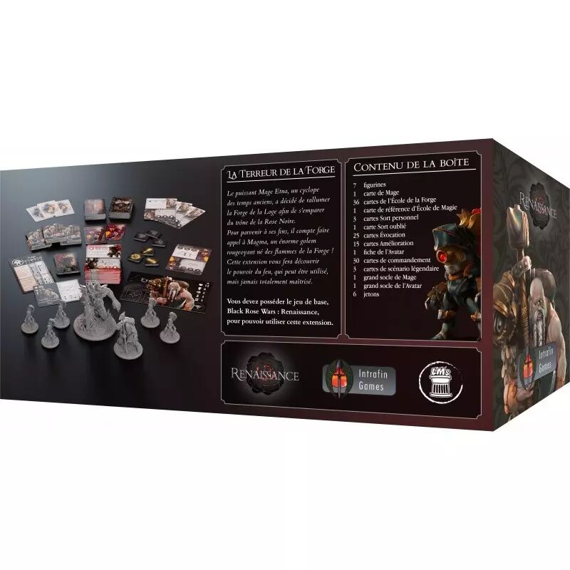 Black Rose Wars : Renaissance - Extension La Terreur de la Forge ajoute Magma, un nouvel Avatar énorme, le nouveau Mage Etna et la nouvelle école de magie Forge, à votre jeu ! Vous trouverez également le matériel pour l'utiliser dans Nova Aetas Renaissance !